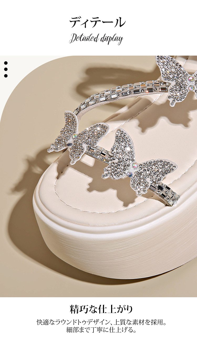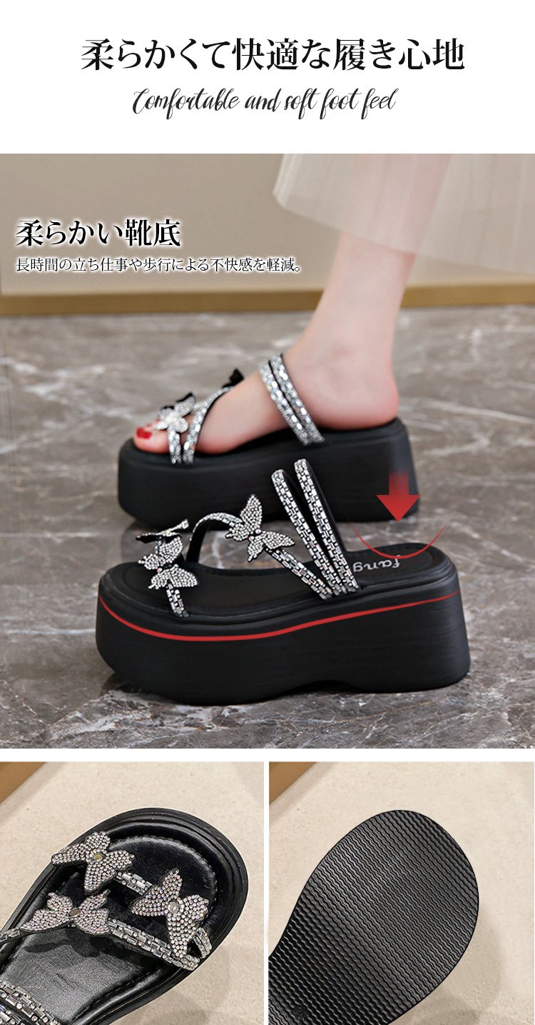 8cm身長アップラインストーン2WAY履ける厚底サンダル